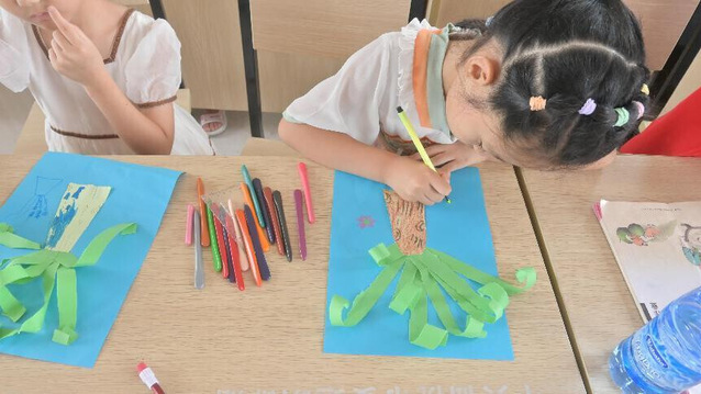 卷卷画致力于培养孩子们的审美能力和创造力。通过鼓励他们思考、观察、感受,我们帮助他们建立起独特的审美眼光。他们开始用自己的方式表达内心的情感和世界的理解,艺术成为他们沟通与交流的桥梁。他们的作品不仅仅是一幅画,更是一个世界的开启,一个内心的宇宙。卷卷画激发了孩子们的想象力和审美能力。教室里不再只是教授技巧和规则,而是提供了一个探索艺术奥秘的天堂。孩子们用绘画勾勒出的形状和色彩,传递出了令人惊叹的创意和美感。他们学会了观察周围的事物,从中获取灵感,将自己独特的视角和想法融入到作品中去。在这个过程中,他们的想象力被激发出来,思维得到了拓展。