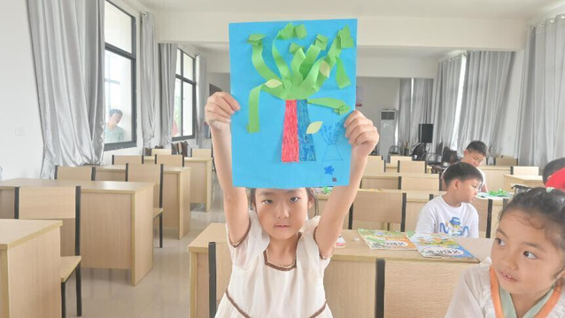 (图为小朋友所展示的卷卷画。通讯员 江坤 摄)