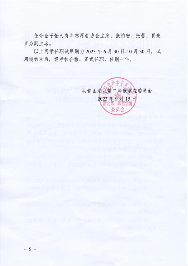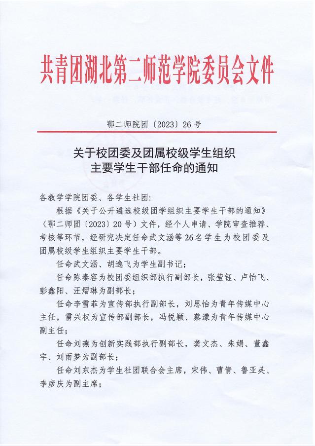 关于校团委及团属校级学生组织主要学生干部任命的通知