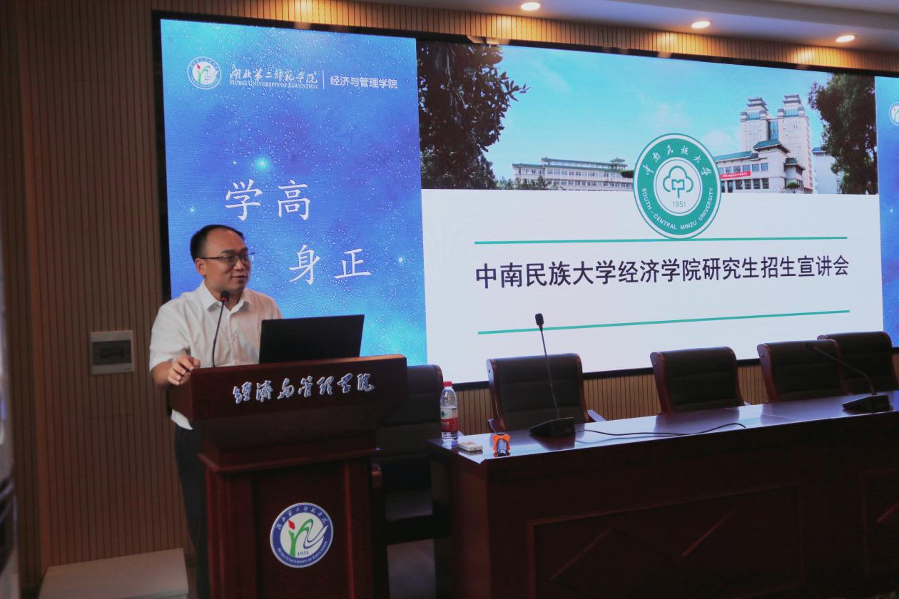 本网讯(通讯员 王思怡 熊英)9月28日下午,中南财经政法大学乡村振兴研究中心主任、我校经济与管理学院(以下简称经管学院)院长陈池波,中南民族大学经济学院院长李波在二号楼三楼学术报告厅开展2024年考研招生宣讲活动。经管学院副院长常静、就业分中心指导老师叶莹分别主持相关活动。