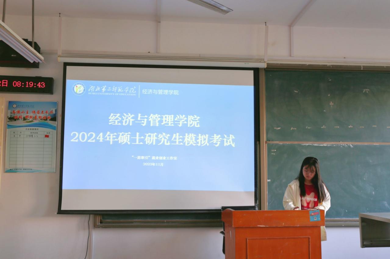 本网讯(通讯员 方红 汪雅雯)11月2日上午,经济与管理学院(以下简称“经管院”)于2408教室组织开展2024年硕士研究生模拟考试。本次模拟考试由21级国际经济与贸易1班孔瑶婷和23级国际经济与贸易2班吴淋莉监考,经管院考研备考生参加。
