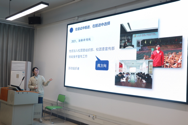 会上,团支部就业委员唐少华介绍了班级同学就业初步意向,团支书王月丽介绍团支部围绕提升同学就业能力实施的六项举措与成效。校友金宇分享了自己的大学成长历程,她从大一的迷茫、大二的从众,大三开始找到发展方向到大四坚定目标学习积累,最终在毕业前找到心仪的工作。她激励学弟学妹们要在干中学,在学中干,不断积累、不断沉淀,做到厚积薄发。