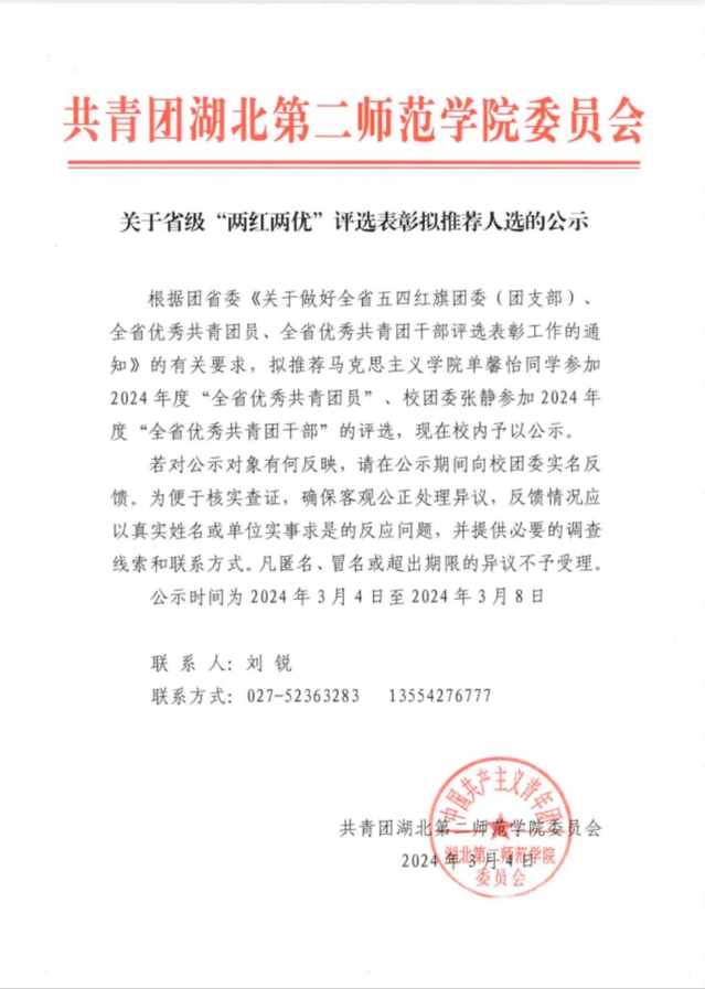 关于省级“两红两优”评选表彰拟推荐人选的公示