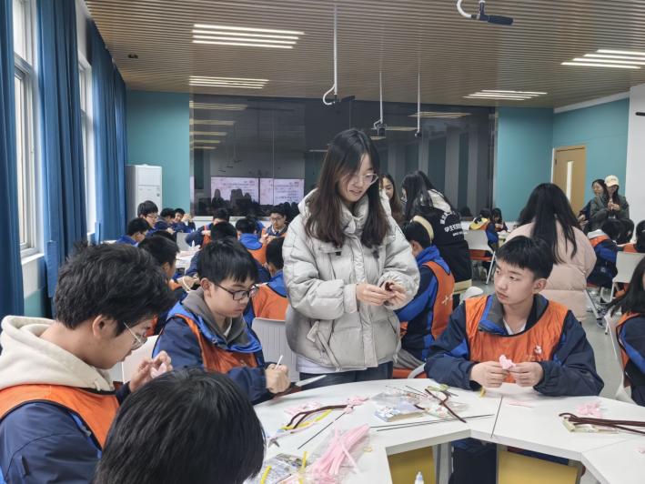 本网讯(通讯员 郑佳媛 陶袁欣 李可馨)3月28日下午,一场别开生面的校际交流活动在校园内热烈展开。校团委副书记张静、校大学生社团联合会指导老师李芊携手主要学生干部,精心组织了孝昌二中进校研学之社团特色课体验活动。此次活动旨在通过社团特色课程,搭建校际交流桥梁,提升学生的动手实践能力,传播环保理念。