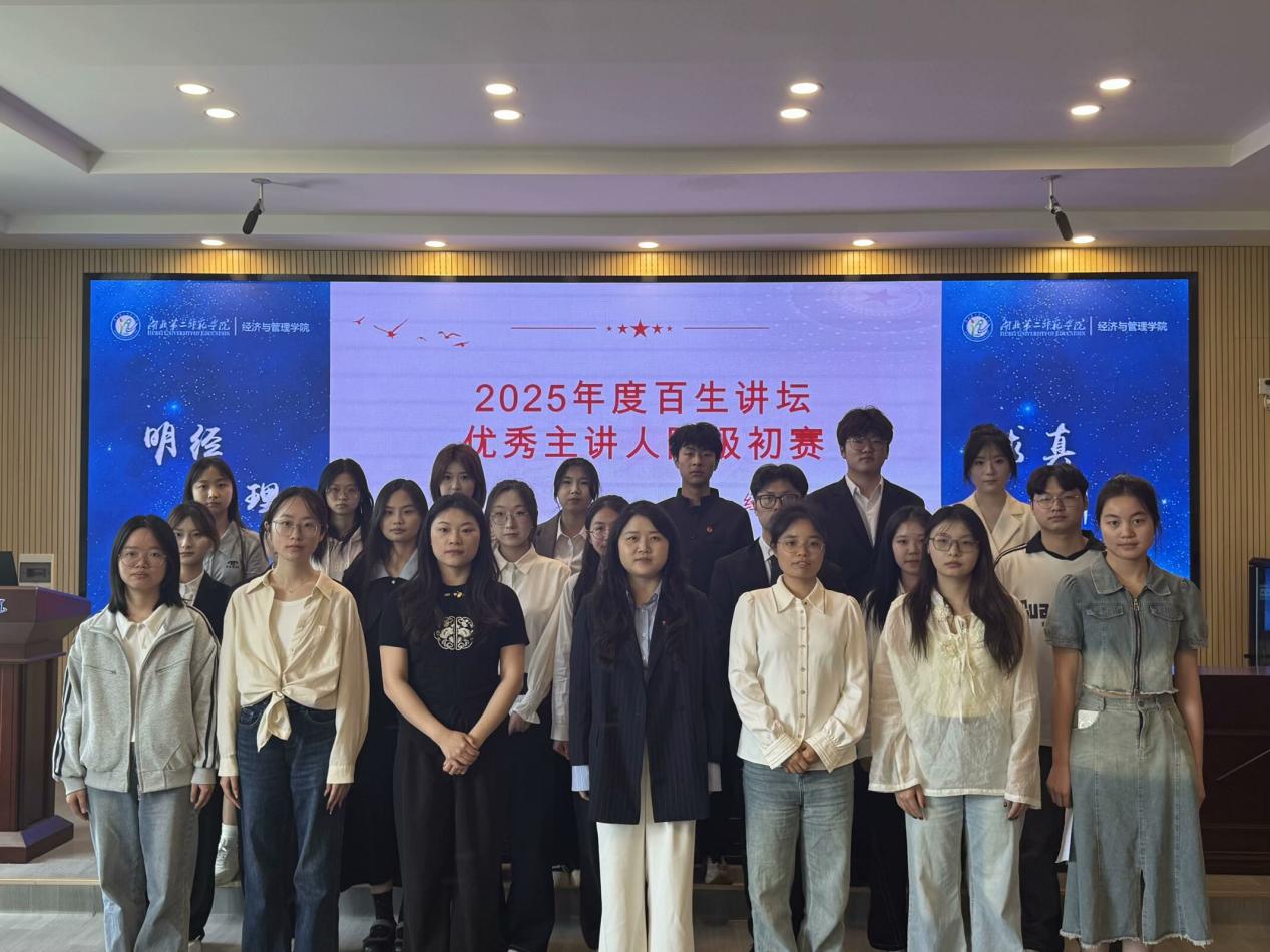 本网讯(通讯员 冯祖玲 崔明炫)4月14日中午,经济与管理学院(以下简称“经管院”)在2号楼三楼多功能报告厅举办2025年度“百生讲坛”优秀主讲人院级初赛。经管院学工办主任周慧东,团委书记徐梅馨,学生会指导老师张泉,奖助评贷工作部指导老师李婷以及分团委、学生会主席团成员担任本次比赛评委。