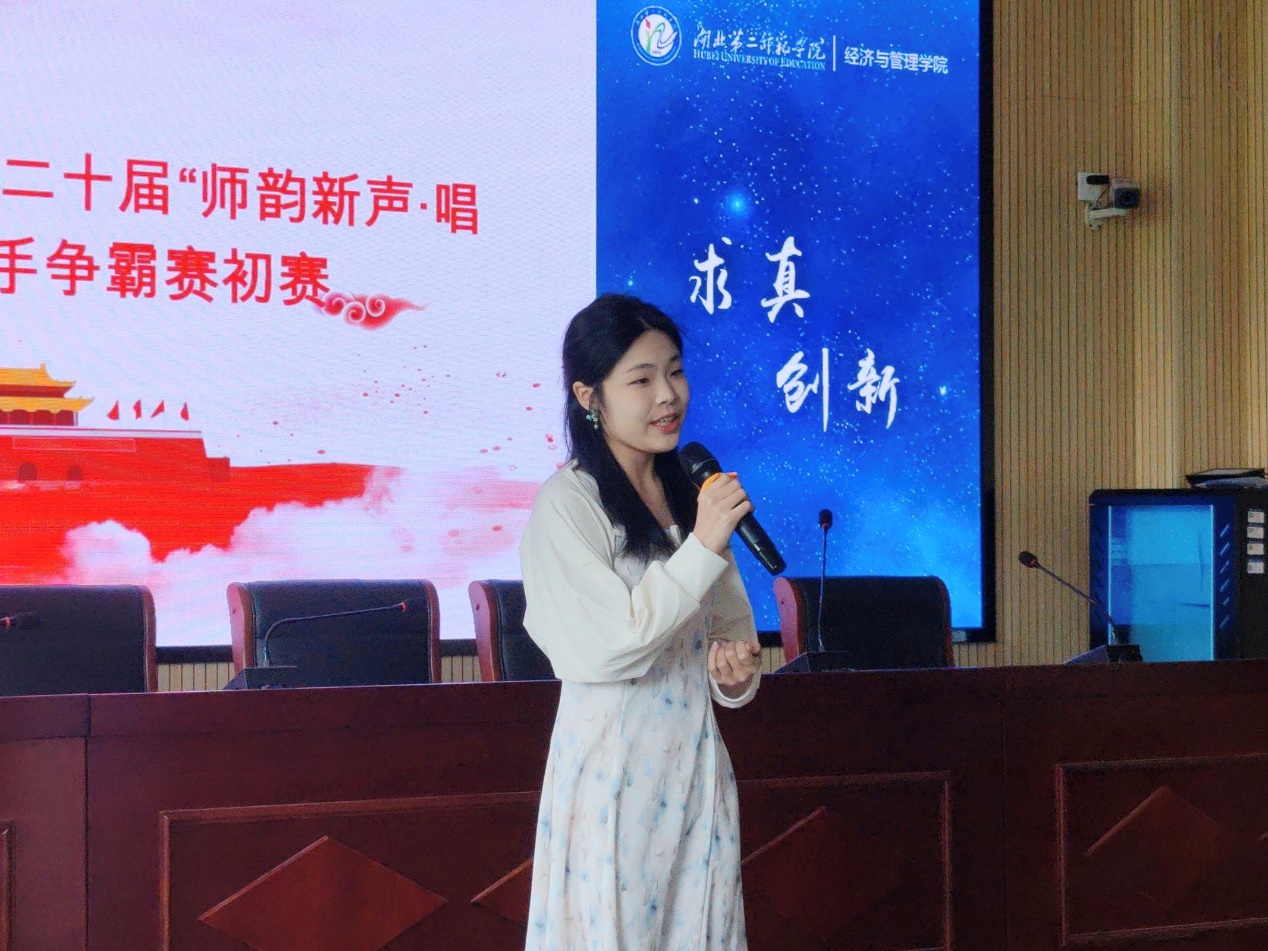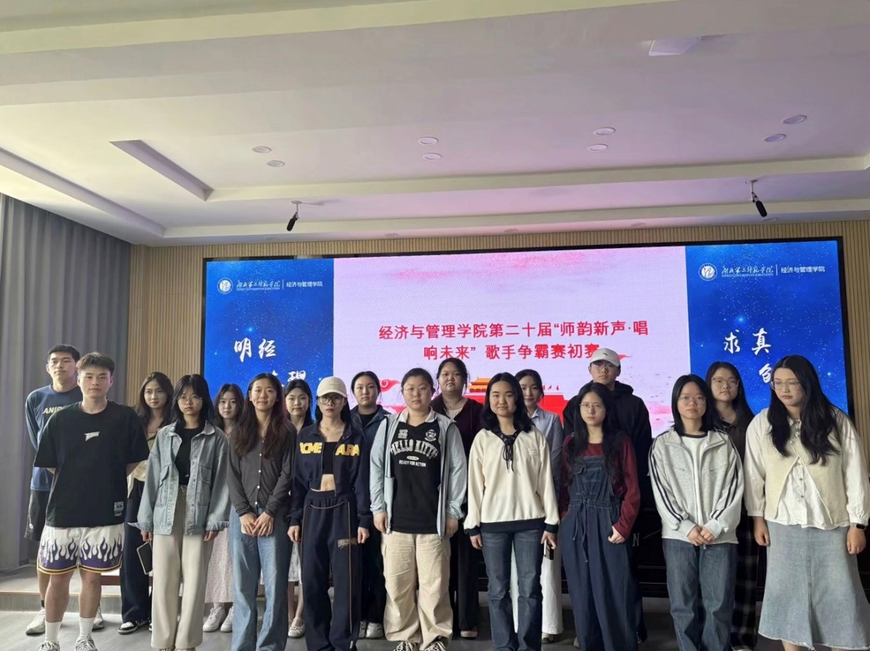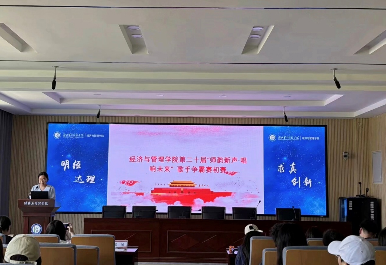 本网训(通讯员 张楠)为丰富校园文化生活,展现学子青春风采,4月15日中午,经济与管理学院(以下简称“经管院”)在报告厅举办“师韵新声·唱响未来”的歌手争霸赛初赛。经管院团委书记徐梅馨,分团委、学生会主席团成员担任比赛评委。