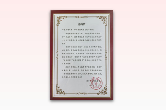 自2015年建立合作关系以来,数学与统计学院与湖口社区共同打造“一站式”学生社区“乐恩家园”实践育人基地,开展思政教育、素质拓展、兴趣培养、思维训练、心理辅导、文化传承等六位一体主题教育活动,构建“大思政”育人体系。双方通过整合社区治理服务窗口资源,将社区实践服务转化为育人优势,把社会资源转化为育人资源,将精神文明创建成果转化为育人成果,实现产学研结合。